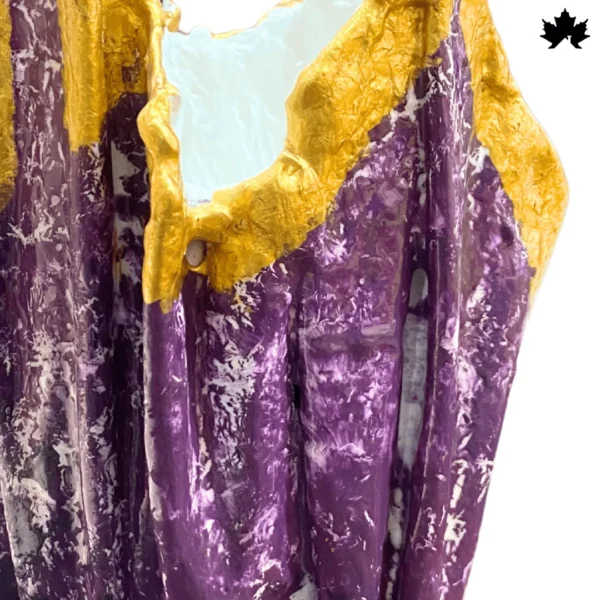 Introducing the Royal Amethyst Resin Planter, a majestic blend of bold design and luxe detailing. Crafted by artisans at Fankaarlok, this statement piece features a rich amethyst-purple body accentuated by dramatic gold-dipped edges, creating the illusion of a blooming crown or crystal formation.