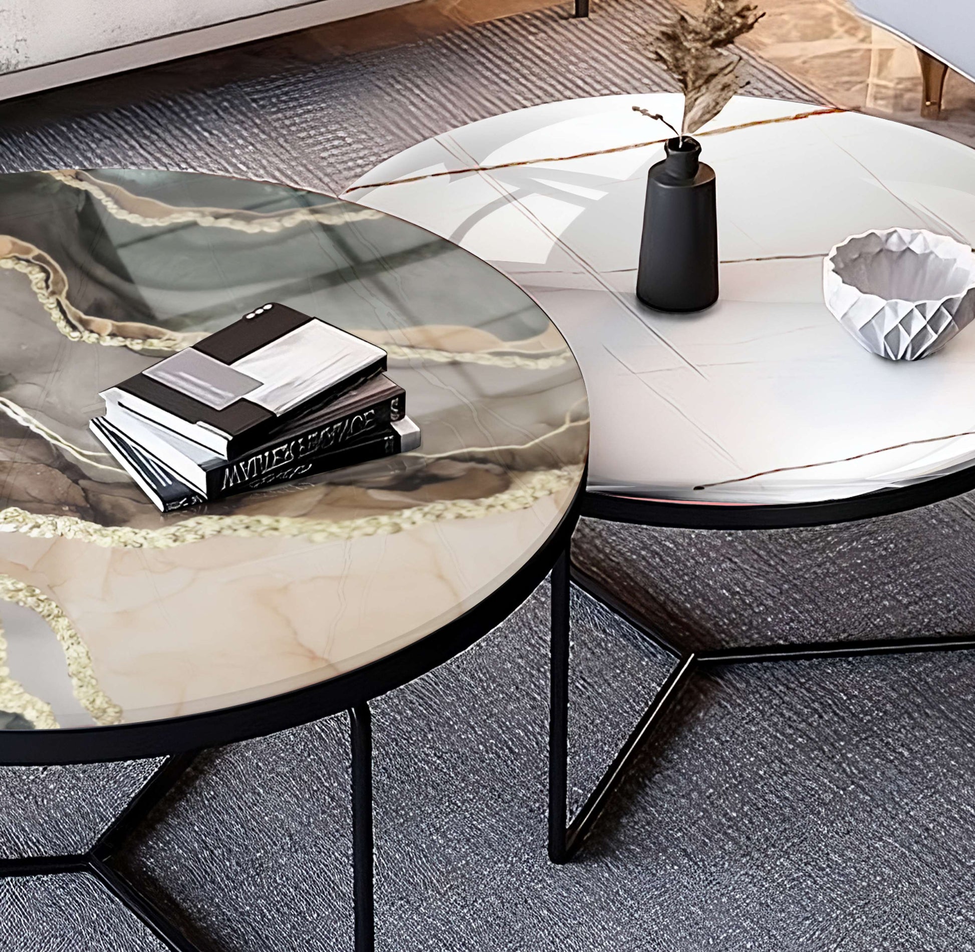 Nested Tables for Living Room – Modern Luxury Epoxy & Metal Set | Fankaarlok