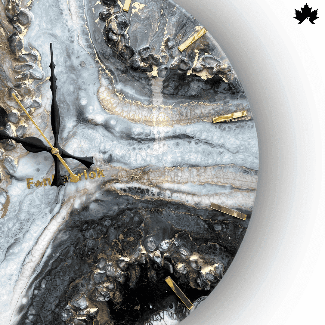 Introducing the Timeless Elegance Resin Art Clock, where functionality meets artistry. This exquisite timepiece is a masterpiece of design, blending swirling marble patterns with sparkling gold veins to create a visual spectacle. Crafted with precision, each clock is unique, ensuring that you own a one-of-a-kind piece of functional art. Available in a range of sizes from 14" to 24" in diameter, this clock is perfect for enhancing your living room, office, or hallway with a touch of sophistication.