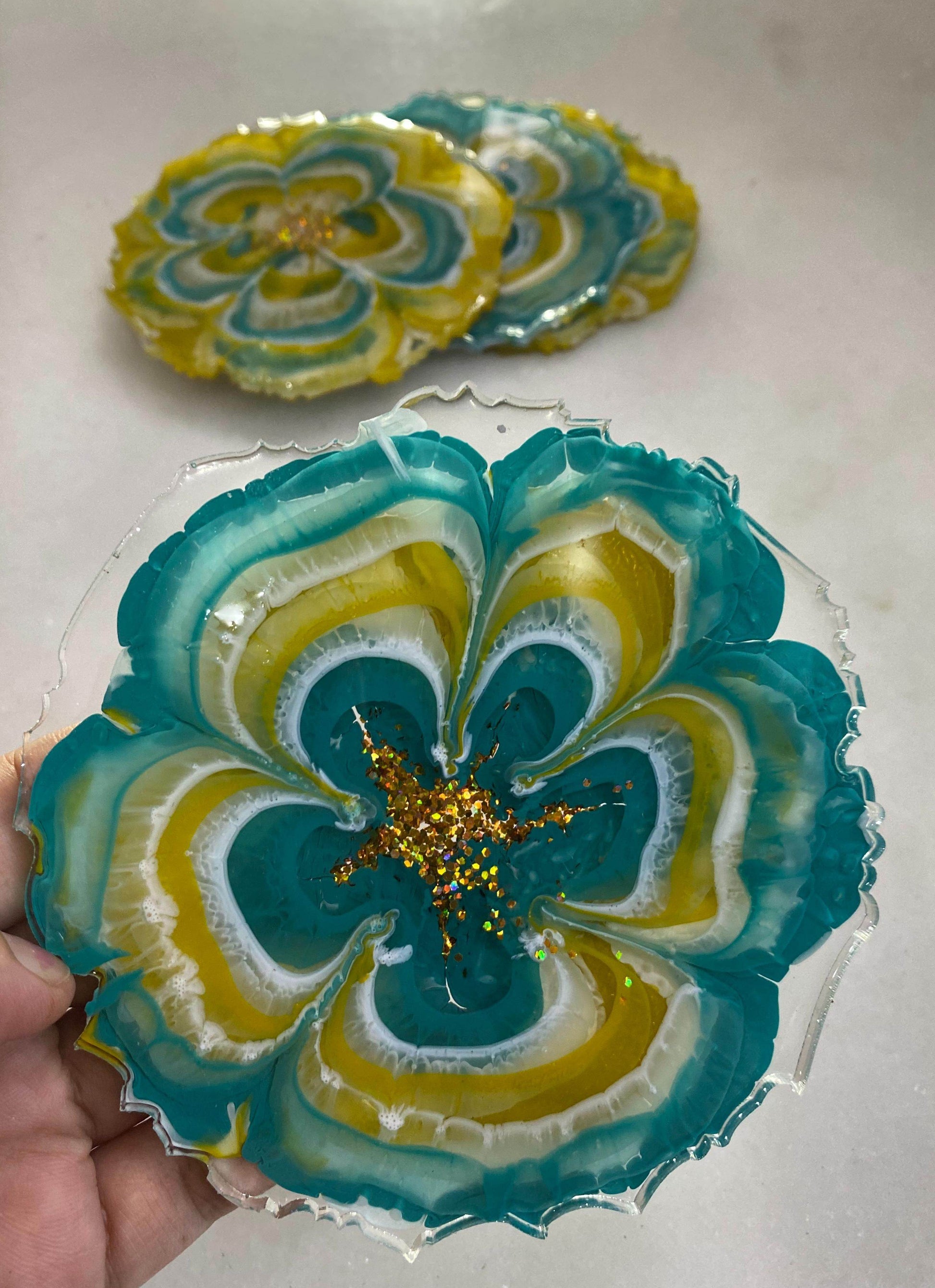 ✅ Includes matching floral-inspired coasters