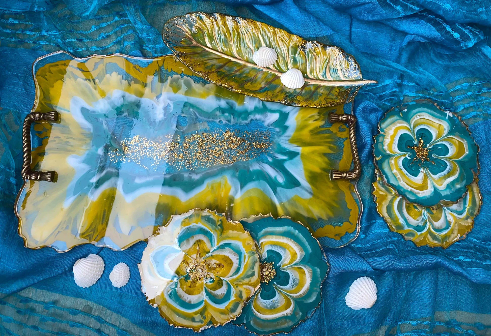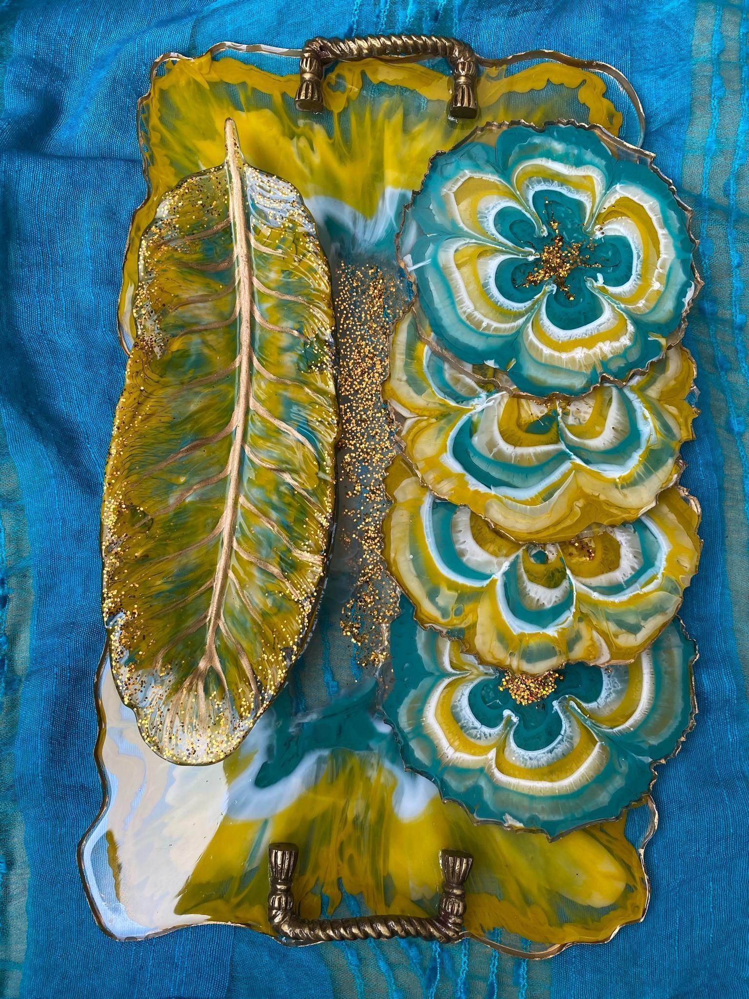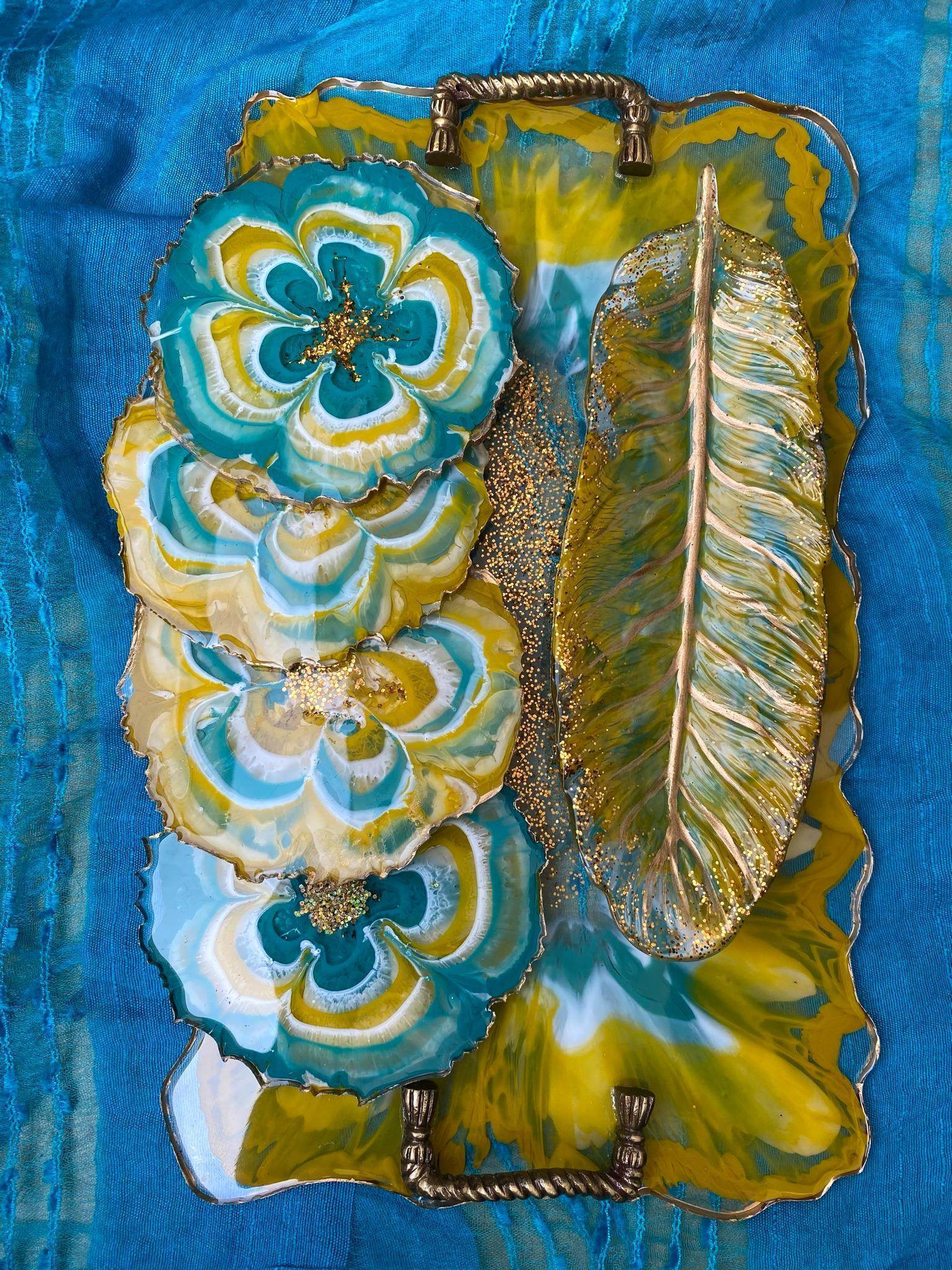 Unique Tray Set with Coasters | Handcrafted Luxury Serving Combo