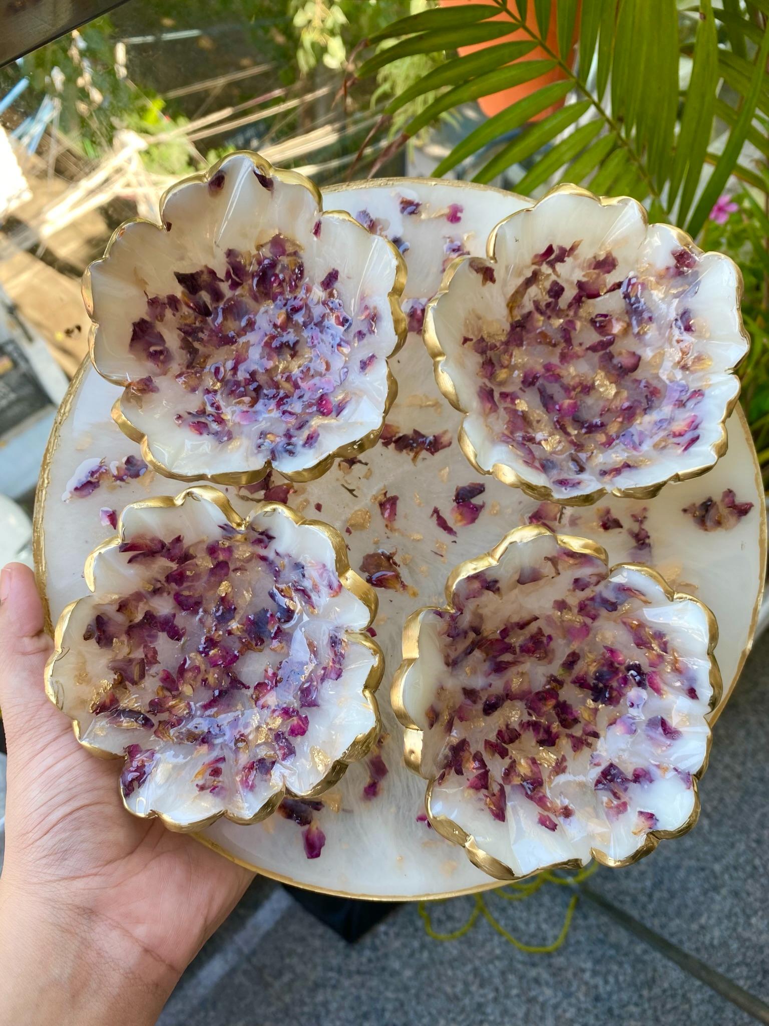 Wedding Dry Fruit Serving Set | Luxury Designer Platter with 4 Floral Bowls